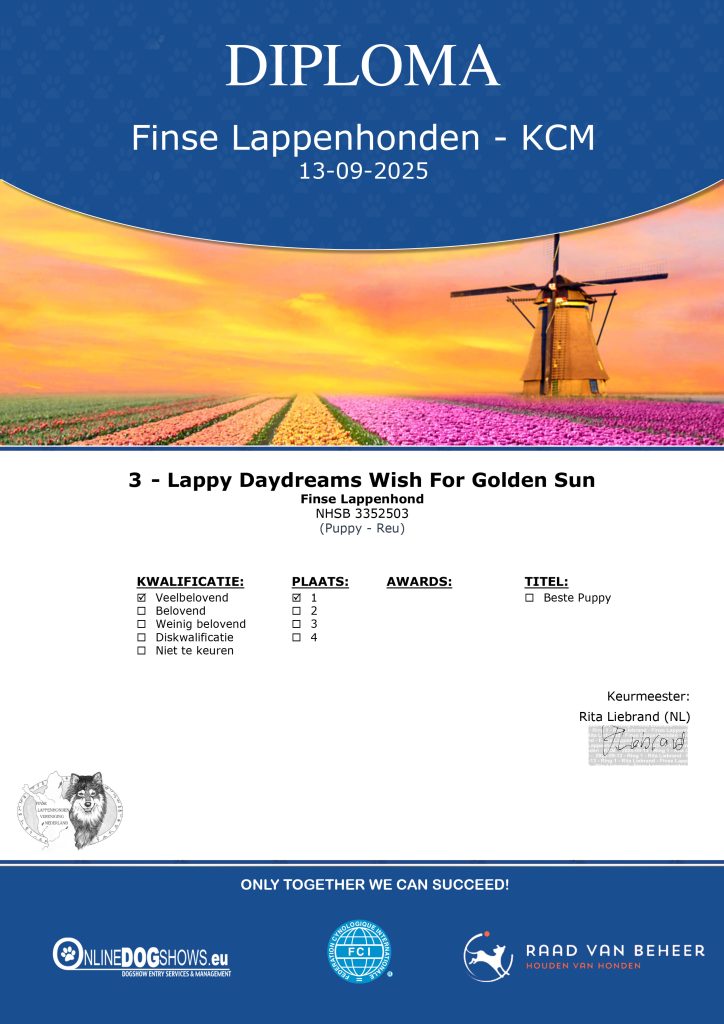 A long cherished wish … we were able to welcome a son of our Bosco, grandson of Rowan. We are grateful that we were able to welcome a third generation. His name is Lappy Daydreams Wish for Golden Sun and his nickname is Olav. Named after his father who is called ‘Valo’ on his pedigree. Olav means the ‘son of his ancestors.’